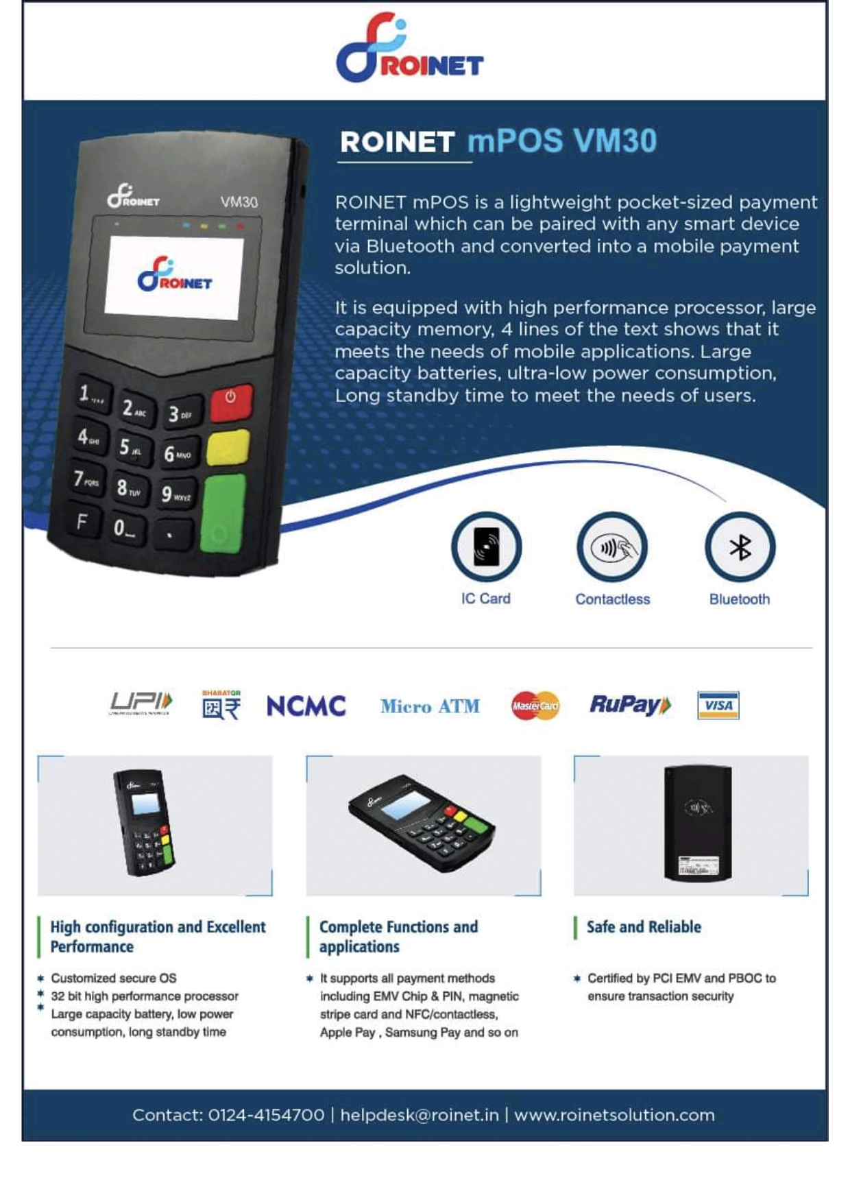 Choose from a wide range of Mini-ATM Roinet branded ATMs. Help your customers in withdrawing cash and making merchant payments using their debit/credit cards.